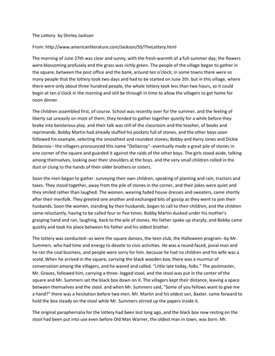 . The tale is about a made-up. Las plantas mostraban profusión de. The Lottery--Shirley Jackson The black box grew shabbier each year.